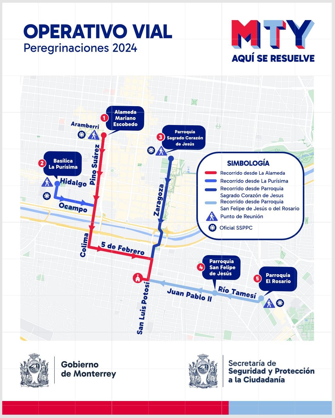 Por la seguridad de los feligreses y para contar con el abanderamiento de los oficiales de Tránsito, se recomienda inscribirse en las oficinas de la corporación, ubicadas en la avenida Lincoln 300, en la colonia Nueva Morelos o vía correo electrónico a sandra.garza@monterrey.gob.mx.